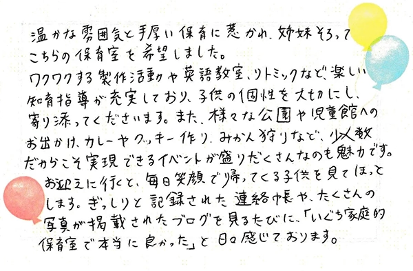 当園をご利用された園児の保護者の方から